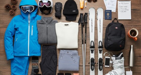 Effective packing begins with a clear plan and organized approach, guaranteeing you maximize space and minimize stress. Use packing cubes to compartmentalize your gear, making it easier to find items quickly. Keep toiletry organization simple by using small bags or pouches, preventing leaks and clutter. Fold clothes efficiently to save space and reduce wrinkles. Create a checklist to ensure nothing is forgotten, and pack essentials last for quick access. Consider rolling your clothing instead of folding to save room and prevent creases. Stick to a designated spot for valuables and important documents. Use compression bags for bulky items like jackets. Regularly review your packing list to eliminate unnecessary items. Staying organized keeps your trip smooth and enjoyable from start to finish.