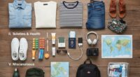 Packing light helps you stay within carry-on size and weight limits, preventing the need to check a bag and avoid associated fees. Focus on clothing coordination to maximize outfit options with fewer items. Choose versatile pieces that mix and match easily, reducing the overall number of clothes. When selecting accessories, pick a few that complement multiple outfits instead of packing many. Keep your packing list streamlined by: